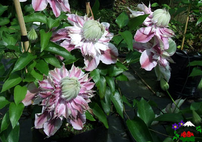An exceptional montana, fully double cream, sometimes with pink/opal tinged flowers. Vigorous, easy grown. October-November. (xA). This is unconditionally the best montana available: compact, small grower (3x3m), more than twice the flowering season than the rest and it is a double! And what’s more; it’s bred in New Zealand!
