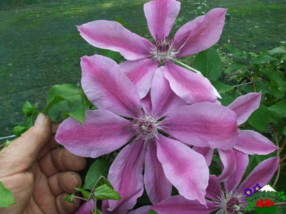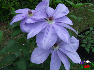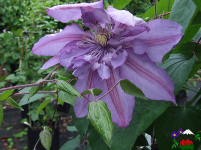 Flowers size of a dinner plate, tepals lavender x6-8, anthers purple. Blooms from spring to autumn. This is one of our most admired Clematis. (xB) Very long season here in Taranaki. Cut flower! |